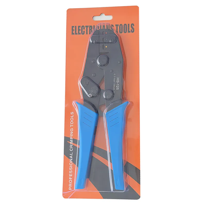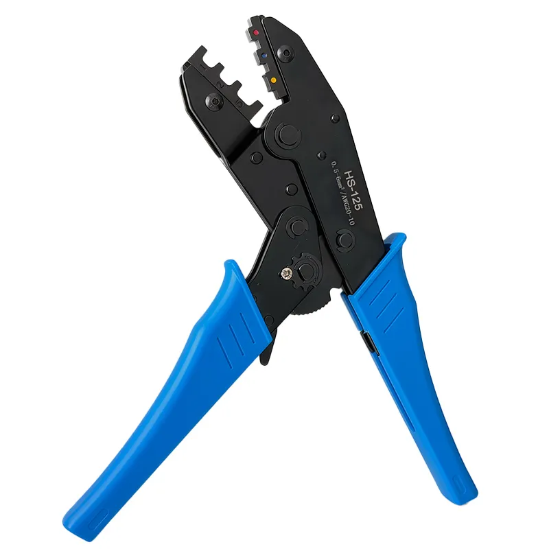 The HS-125 ratchet crimping pliers are designed for cold-press and heat-shrink insulated terminals, with a crimping range of 0.25–6mm². Made of durable high-carbon steel and fitted with ergonomic PTR handles, this tool ensures efficient, labor-saving performance for professional and wholesale use.