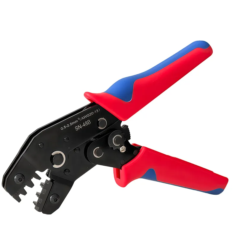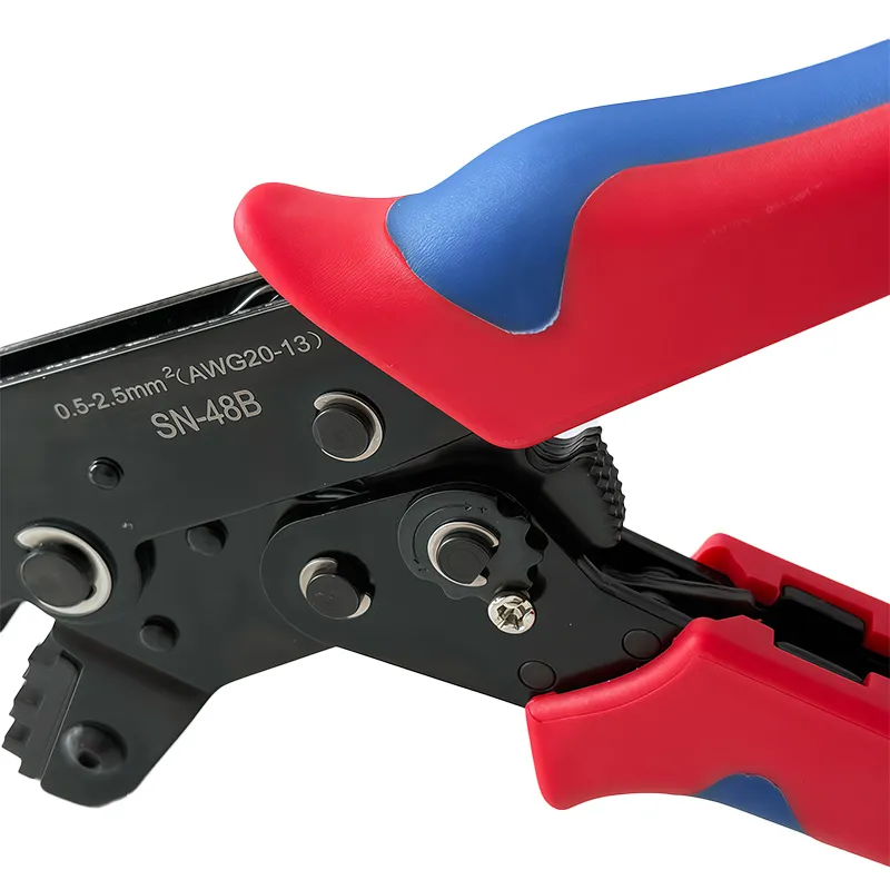 The HSC8 16-4 Ferrule Crimping Pliers provide precise and secure crimps for tubular ferrules and pin-type terminals. Featuring a square crimping profile, this tool guarantees maximum contact and conductivity for reliable electrical connections. The ratchet mechanism reduces effort, while PTR ergonomic handles improve comfort during extended use. Available in multiple handle colors and customizable for bulk orders.